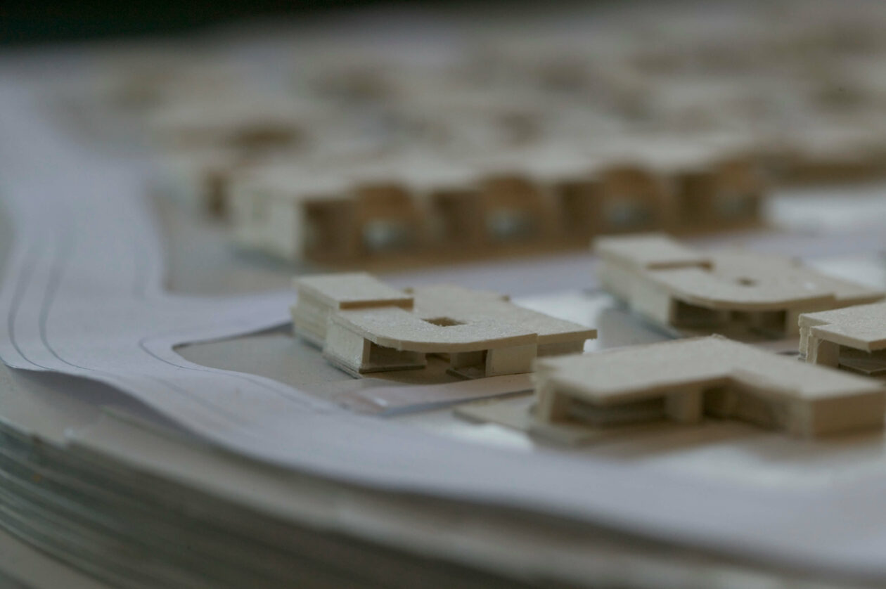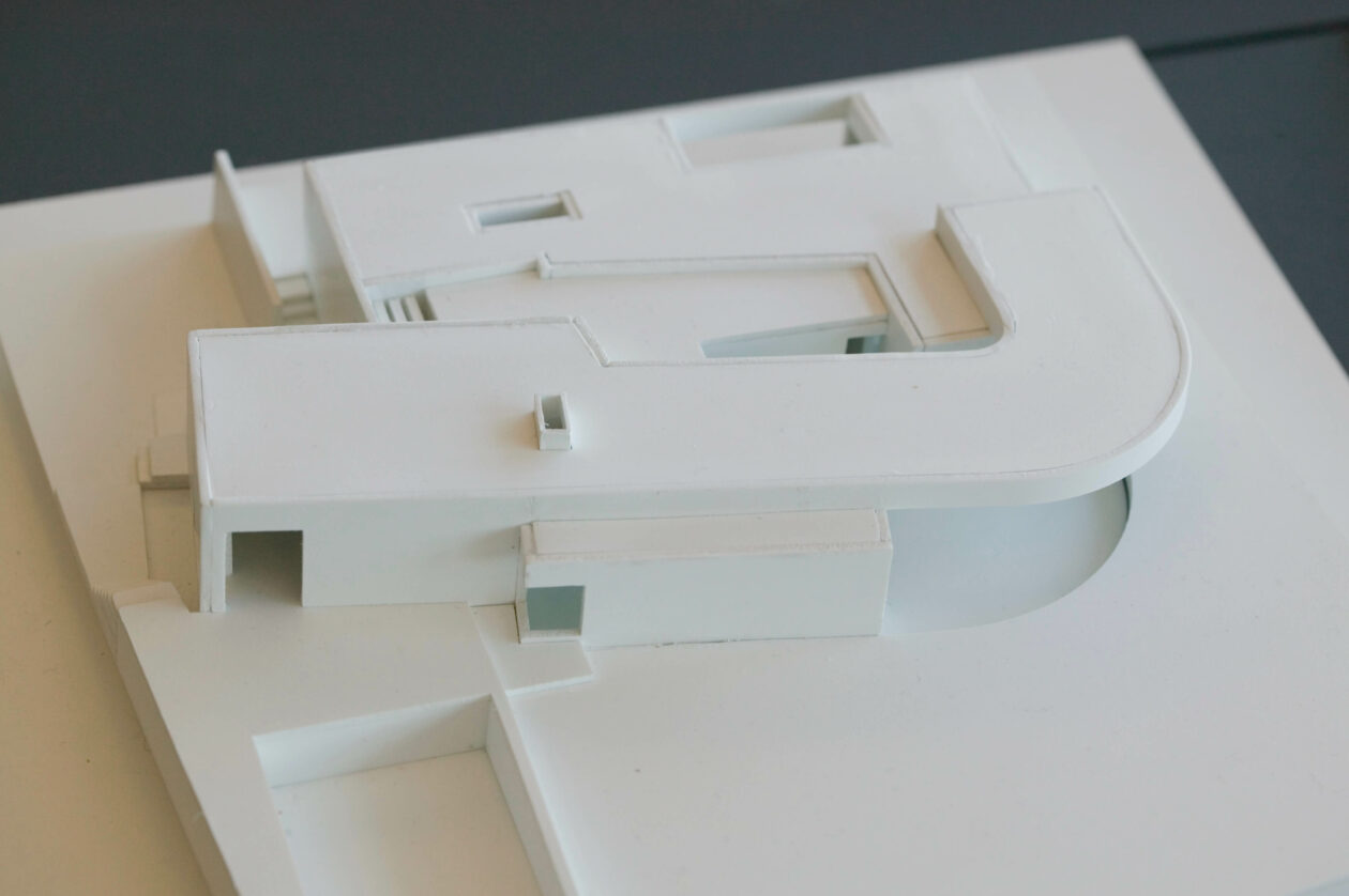 A key feature of the design is the unconventional placement of the kitchen in the south-eastern quadrant, reflecting its role as a central and social space. The suite, elevated above the rest of the house, offers a sense of retreat while maintaining a direct connection to the outdoor areas. The swimming pool, located in the northwest quadrant, is slightly raised to define distinct garden spaces, enhancing spatial fluidity while preserving a sense of enclosure.