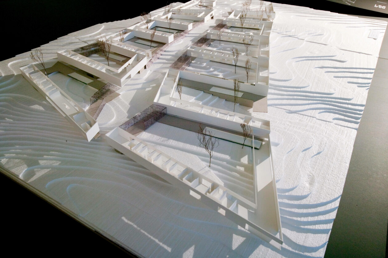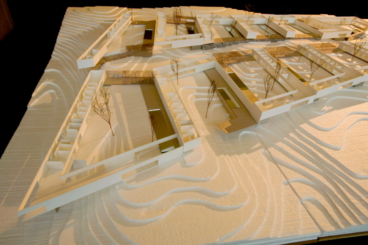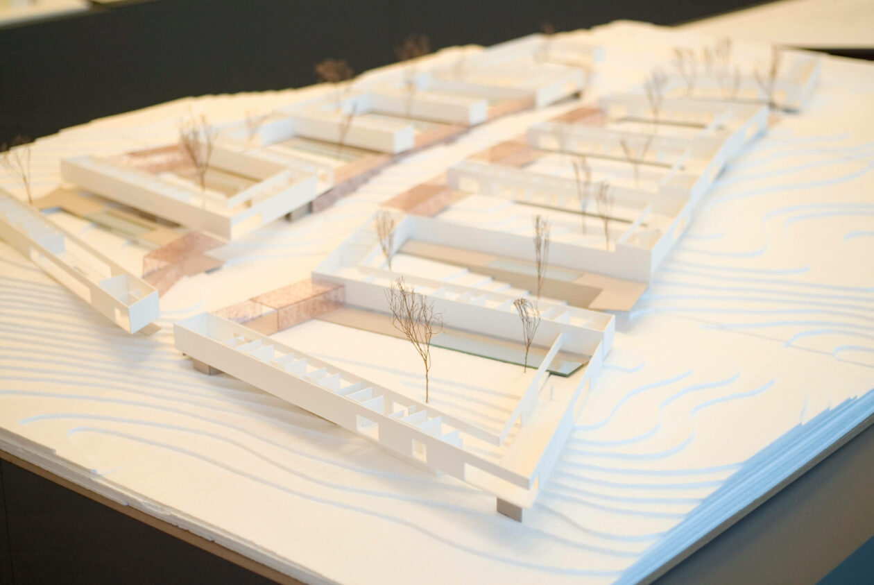 “The concept of building the houses along the site boundary leaves room for large gardens and courtyards, which ensures a high level of privacy for each individual villa. The various living areas are designed around this spacious outdoor area.”