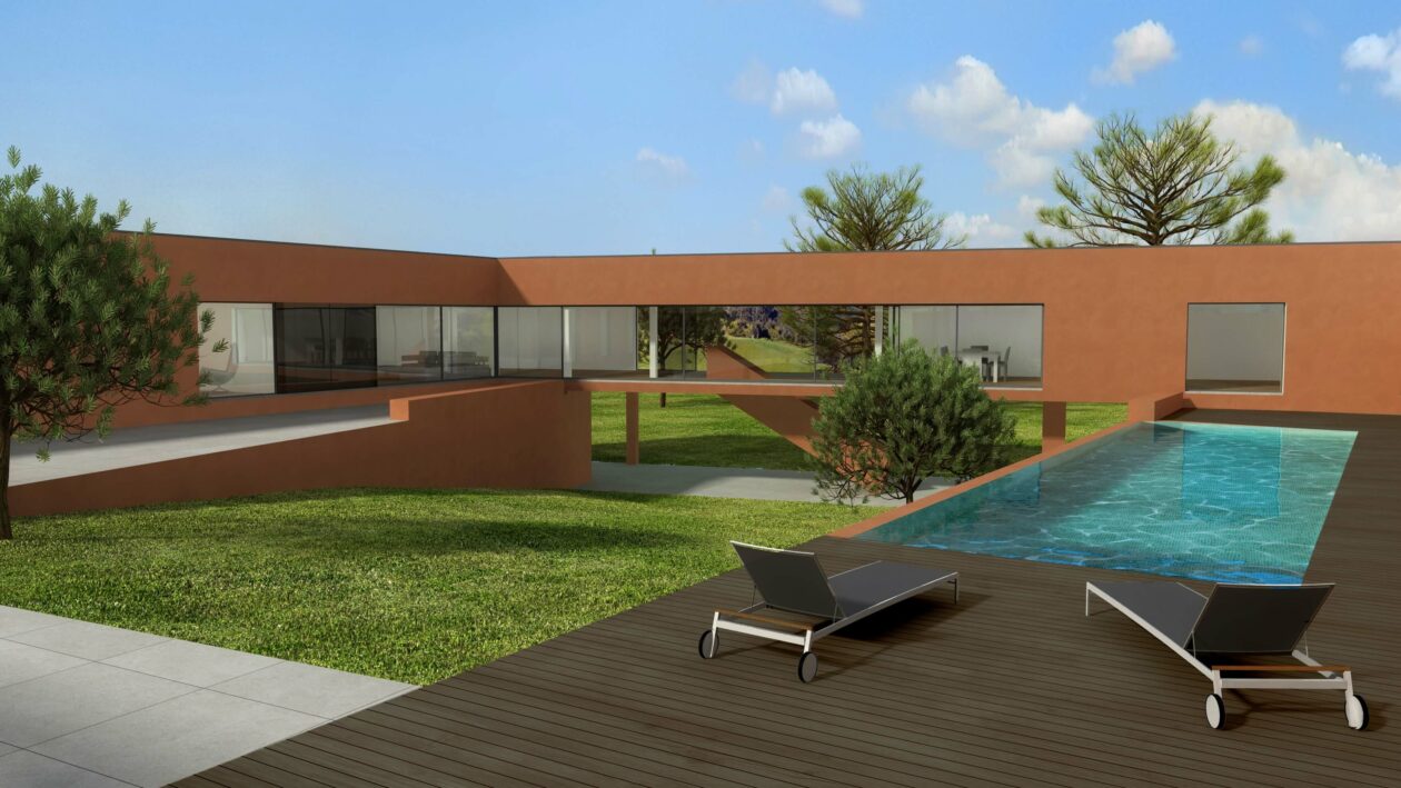 Originally envisioned in white, these villas instead became known for their striking red façades, a defining feature that gives them a strong architectural presence. Positioned along the golf course, overlooking holes 12 and 13, the houses blend harmoniously with centuries-old olive trees and the surrounding terrain. Unlike conventional layouts that place dwellings at the center of plots, Carrilho da Graça positioned his houses along the periphery, allowing for expansive courtyards that serve as the heart of each home. This design ensures privacy while fostering a sense of openness and connection to nature.
