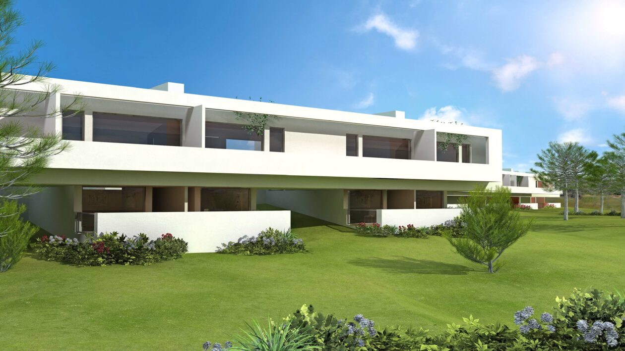 Designed by Madalena Cardoso de Menezes and Francisco Teixeira Bastos, this project consists of 18 one-bedroom duplex townhouses, located on Plot 153 along Caminho do Ferro and Caminho de Casa, within the Bom Sucesso Design Resort, Leisure & Golf. Built between 2008 and 2009, these homes are divided into two rows (A and B), positioned along the western side of streets A and C2, overlooking the eastern slope of the Quinta do Bom Sucesso golf course valley.