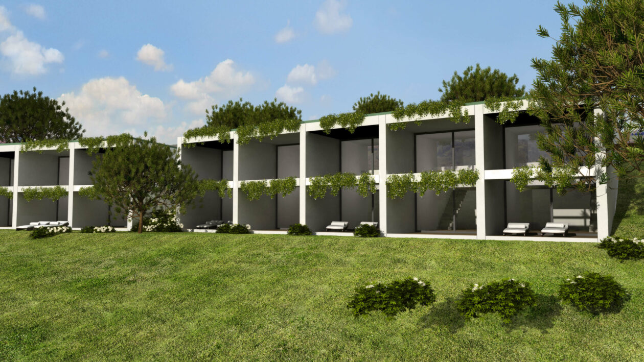 Designed by Nuno Graça Moura, this set of 12 T2 rowhouses on Rua da Lagoa follows the same architectural concept as his famous “Bar Code” rowhouses, but with a wider design and integrated garages, offering more spacious interiors and enhanced functionality.