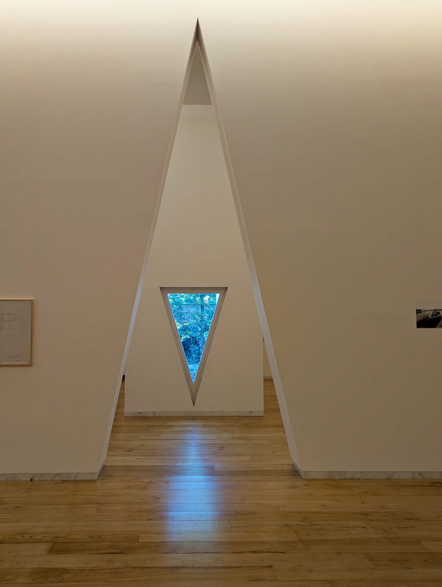 The museum’s design is characterized by its minimalist aesthetic and thoughtful integration into the landscape. Positioned lower than the main garden, the building is discreetly nestled into its surroundings, ensuring that it remains invisible from the historic house and vice versa. This strategic placement respects the integrity of the garden, allowing the natural beauty to remain the focal point.