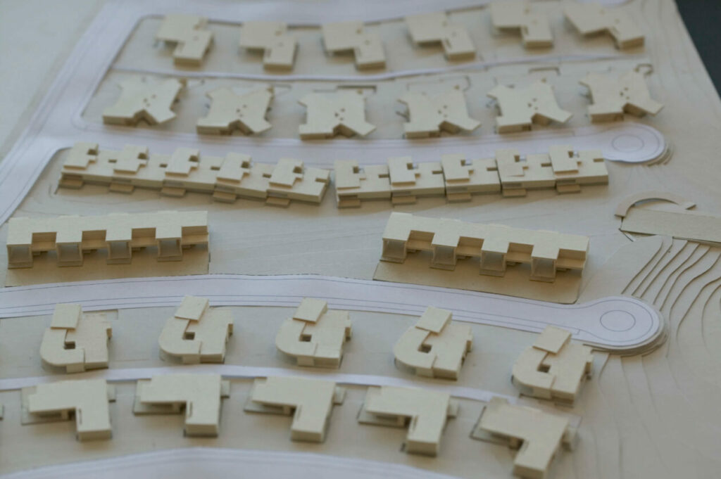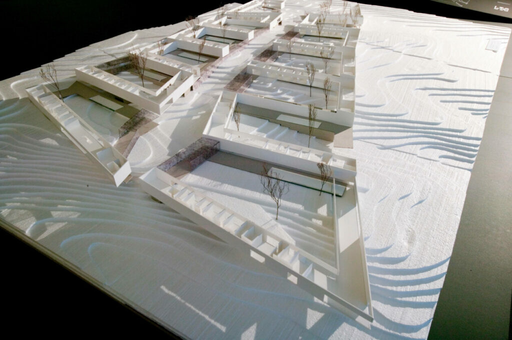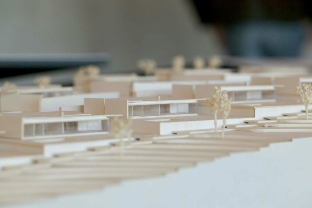 This year, we were lucky to receive original photographs from the 2004 exhibition, including close-up images of the house models—some of them still made from simple paper and cardboard. These images beautifully capture the early ideas, pure concepts, and architectural ambition that shaped our resort.