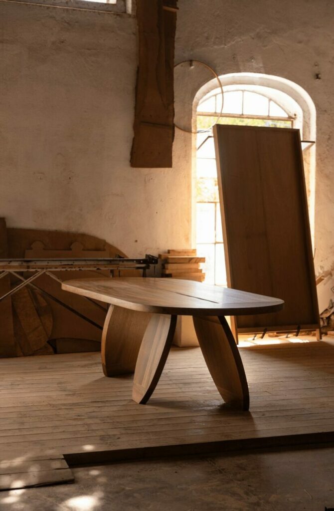 • Void Dining Table — French oak with live edges, exploring presence and absence.